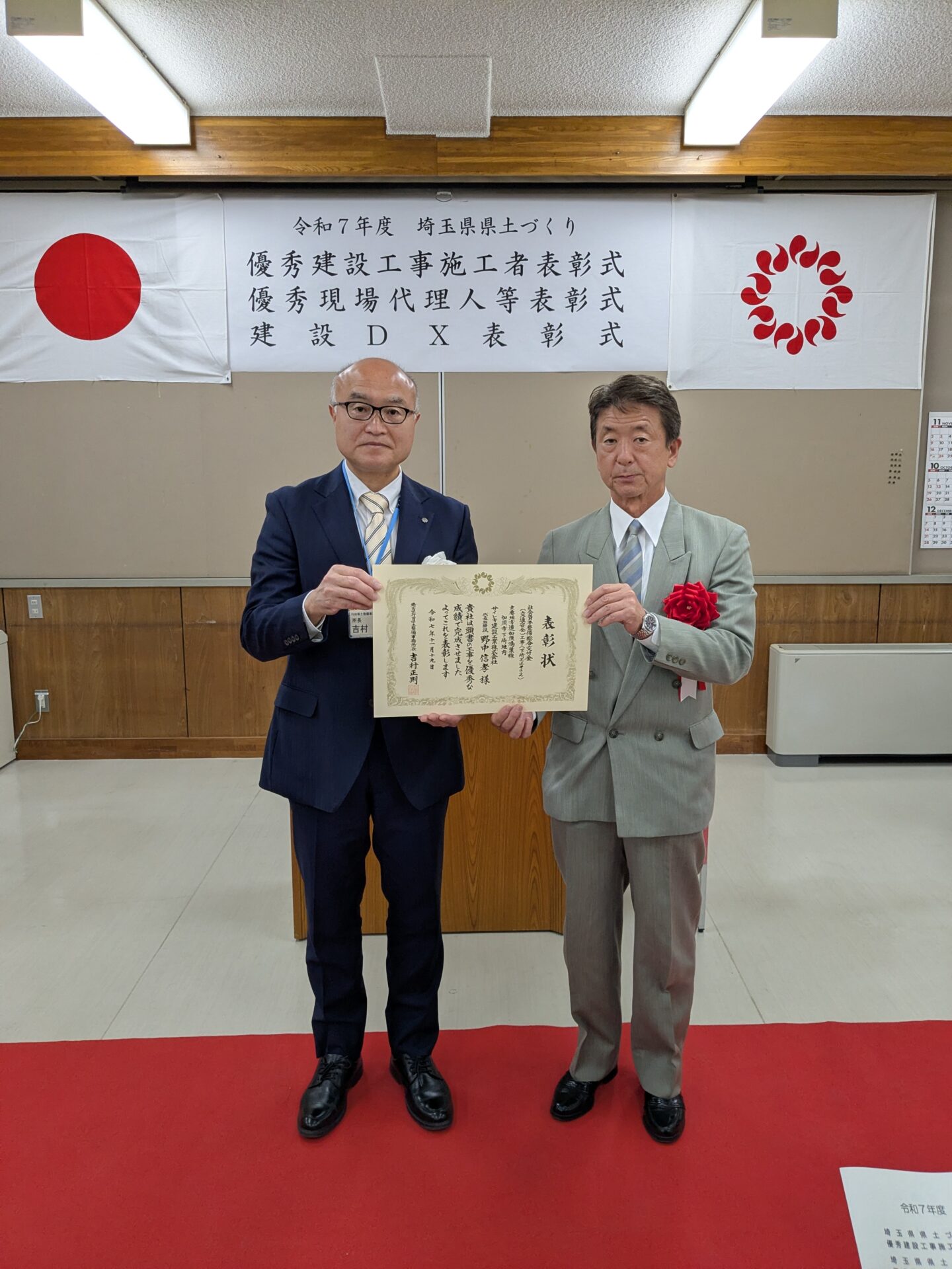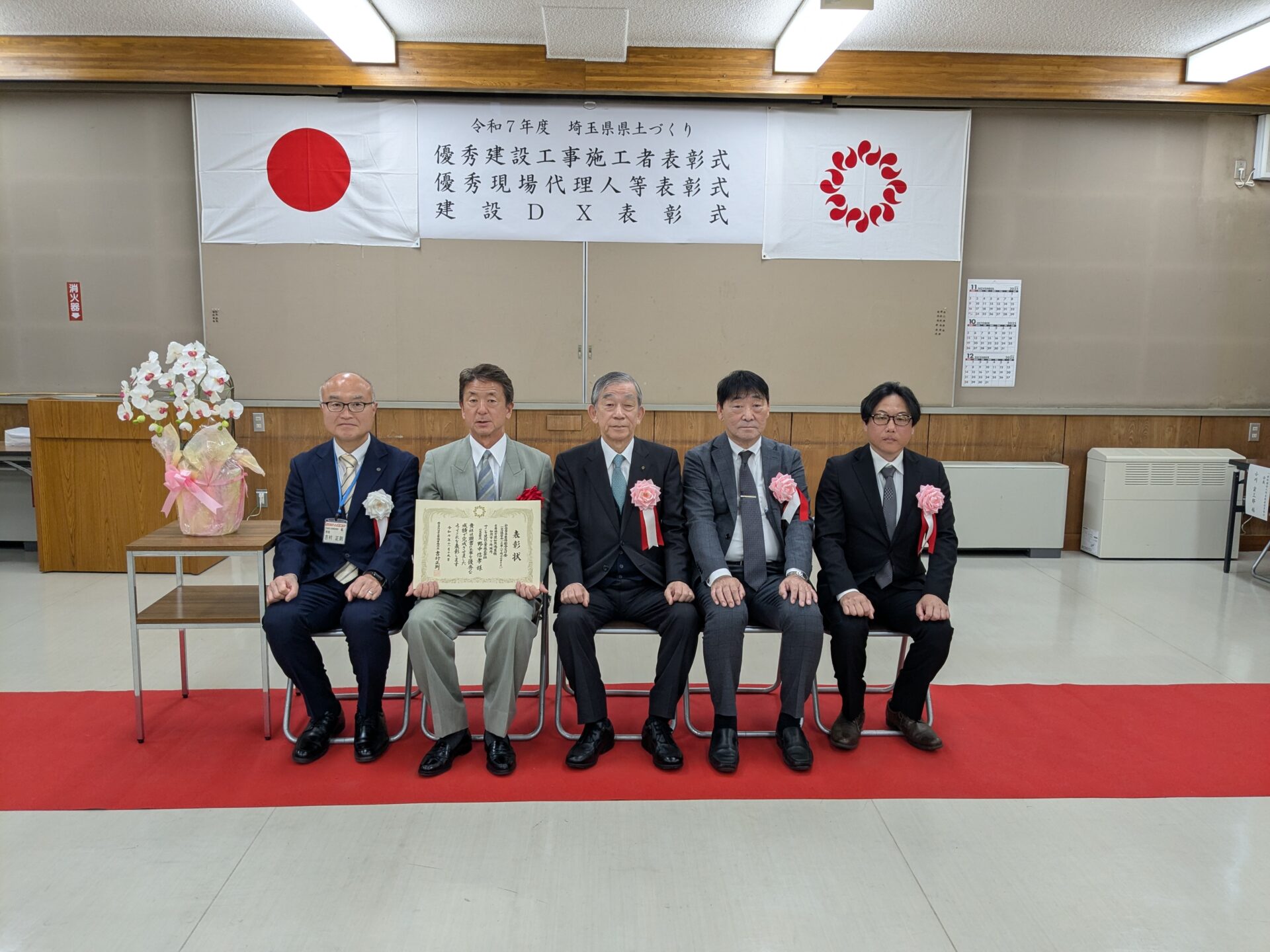 令和7年度埼玉県県土づくり表彰式において、優秀建設工事施工者表彰を受賞しました。 投稿日 2025年11月20日 著者 サイレキ建設工業(株) カテゴリー お知らせ 埼玉県行田県土整備事務所より、埼玉県県土づくり優秀建設工事施工者表彰を受賞しました。工事名:社会資本整備総合交付金(交通安全)工事(下崎工区その2)